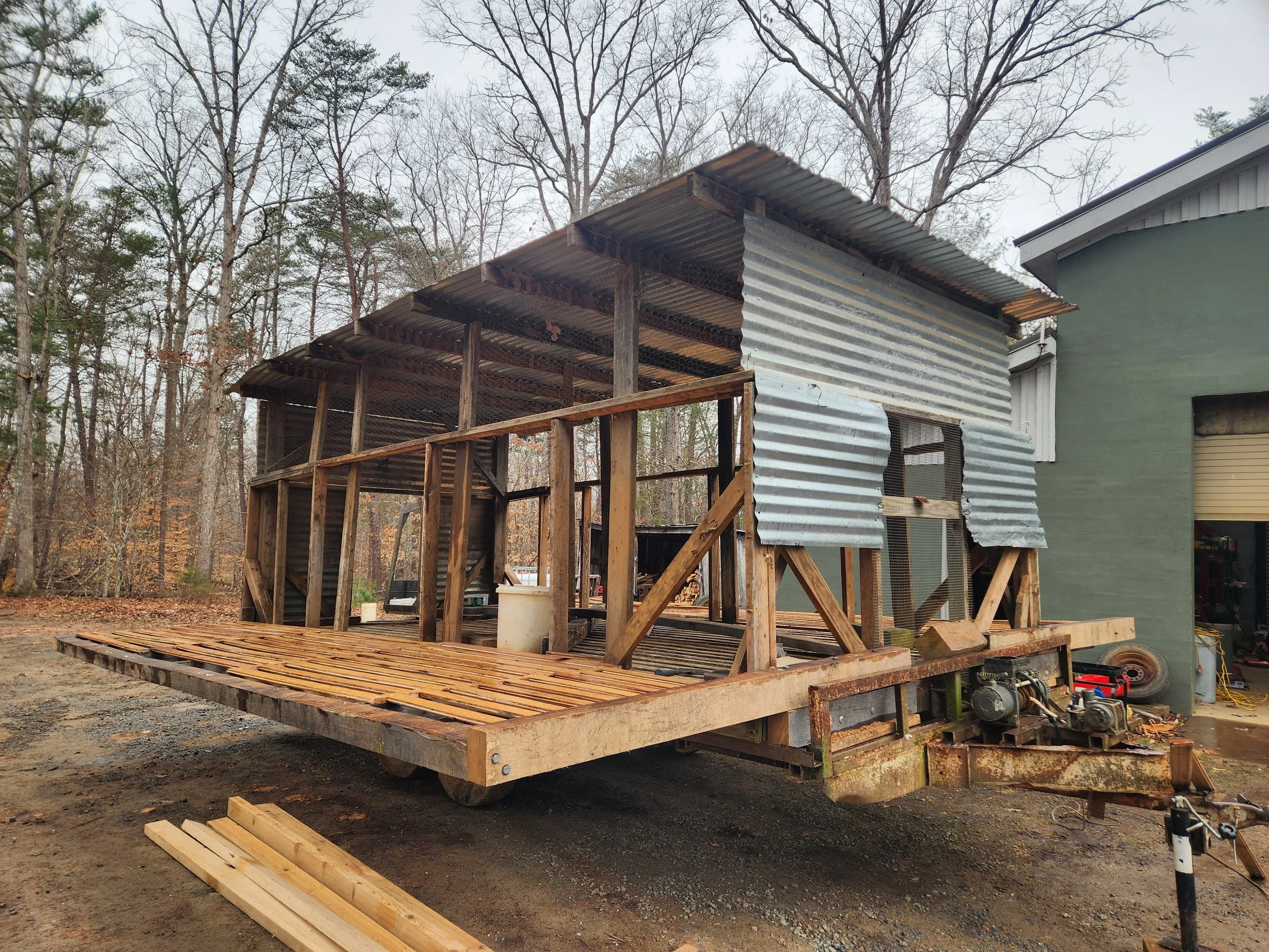 Nat is using the lumber to renovate one of our mobile chicken tractors that we use for the laying flock. We collect eggs twice per day, so anything we can do to make this job easier/quicker is great. Benefits of this new design: